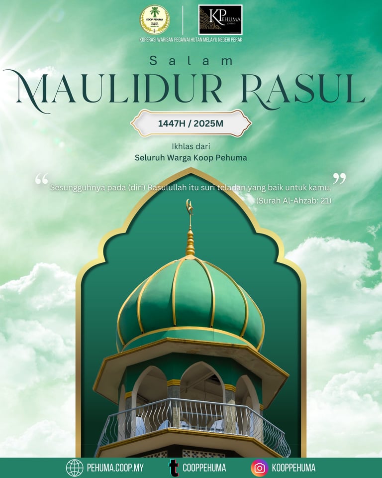 Semoga dengan penghayatan Maulidur Rasul, kita dapat memperkukuh semangat kebersamaan dalam memajukan agama, bangsa dan negara, seiring dengan usaha membangunkan koperasi ke arah kesejahteraan bersama.